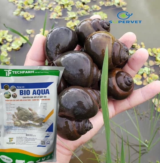 Men vi sinh BIO AQUA là sản phẩm chuyên dụng để xử lý đáy ao và cải thiện chất lượng nước trong mô hình nuôi ốc bươu đen, ốc nhồi, cũng như các đối tượng thủy sản khác như tôm, cá, ếch, lươn, chạch.